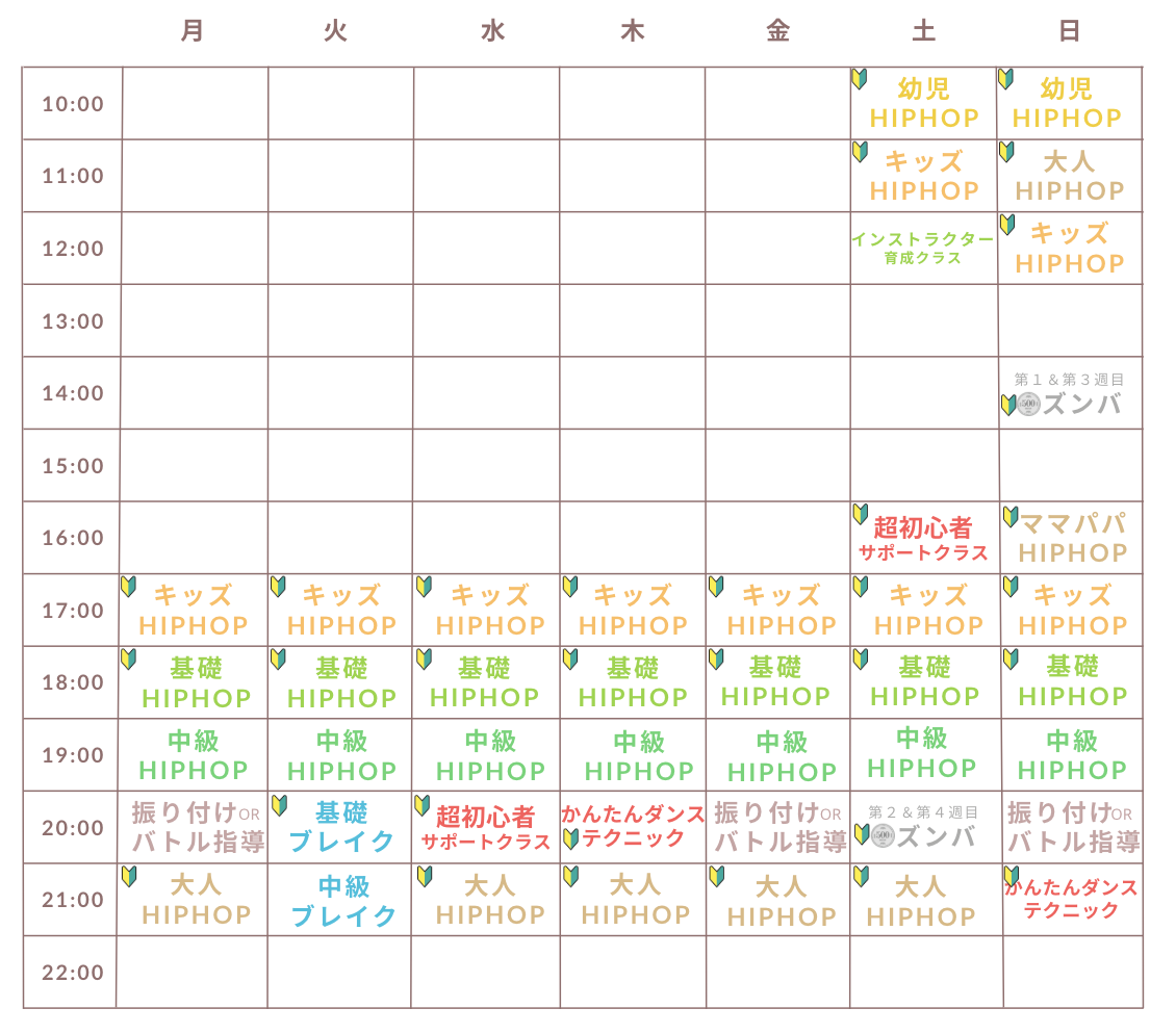 日時 | ◼️グループレッスン: 一般 毎日18:00~21:00/日曜11:00/土日16:00 キッズ 土日10:00~13:00 ◼️個別レッスン: 毎日9:00~23:00 ※講師と日程調整をします。 ◼️オンライングループレッスン: 火曜日17:00/木曜日20:30 ◼️オンライン個別レッスン: 毎日17:00~22:00 ※講師と日程調整をします。 |